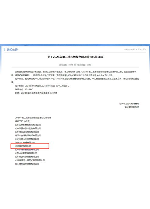 臨沂市“綠色工廠”
