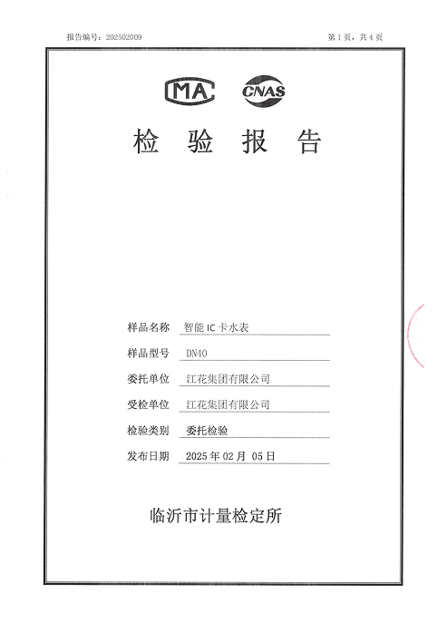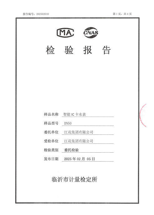 智能IC卡水表檢驗(yàn)報(bào)告DN4